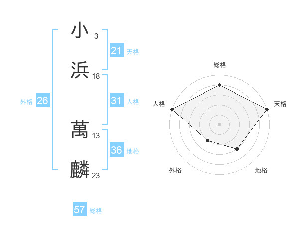小浜 萬麟さんを姓名の画数から五運を鑑定
