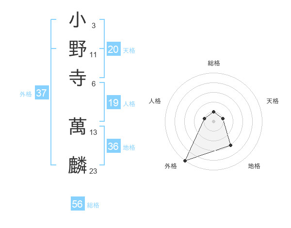 小野寺 萬麟さんの外格は37画の5点!