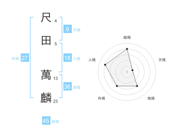 尺田 萬麟さんの総格は45画の4点!