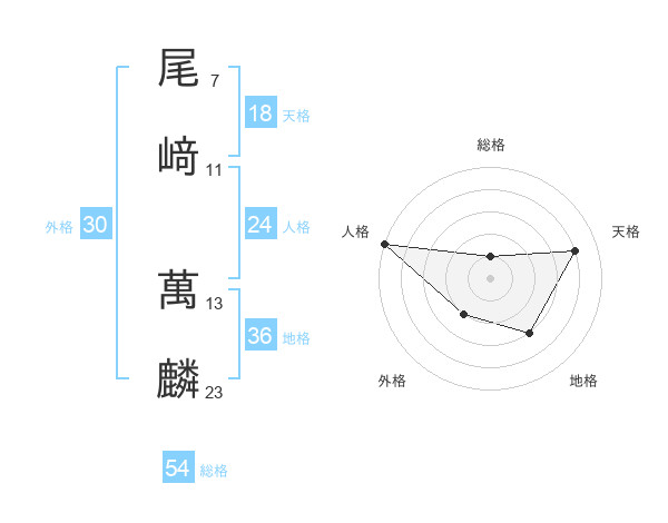 尾﨑 萬麟さんの総格は54画の1点!