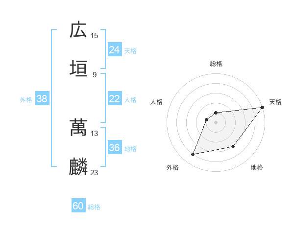 広垣 萬麟さんを姓名の画数から五運を鑑定