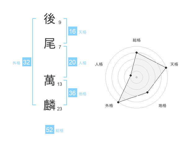 後尾 萬麟さんの総格は52画の4点!