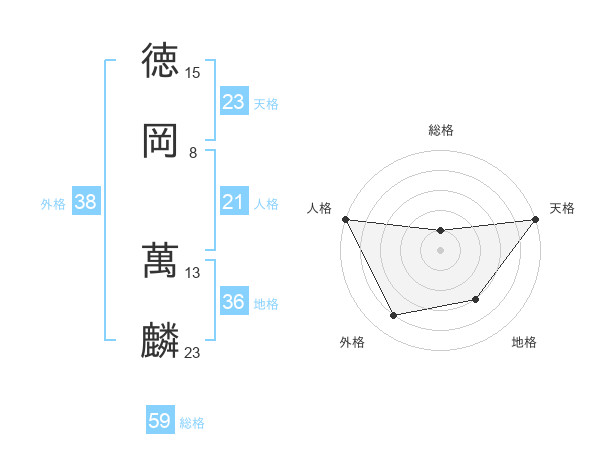 徳岡 萬麟さんを姓名の画数から五運を鑑定
