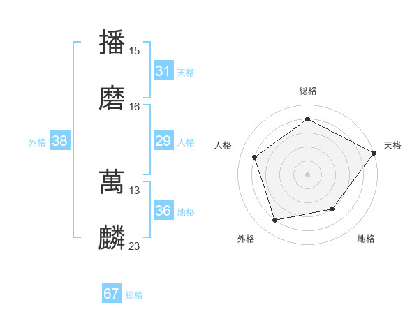 播磨 萬麟さんの総格は67画の4点!