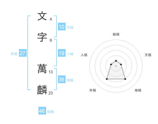 文字 萬麟さんを姓名の画数から五運を鑑定