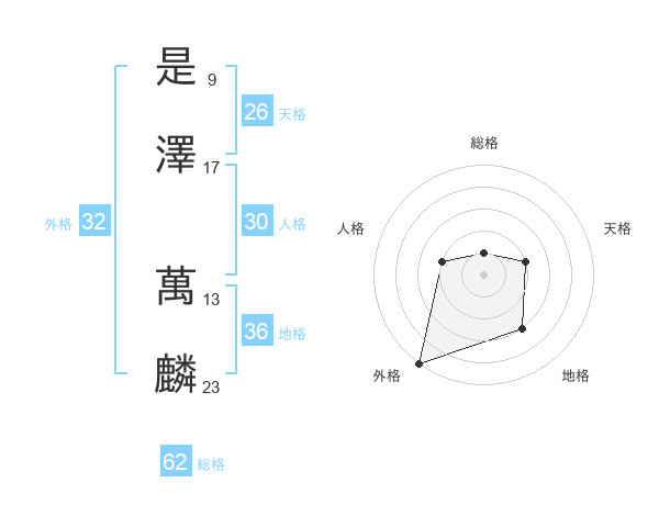 是澤 萬麟さんの外格は32画の5点!