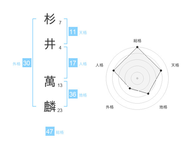 杉井 萬麟さんの総格は47画の5点!
