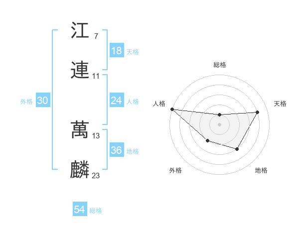 江連 萬麟さんを姓名の画数から五運を鑑定