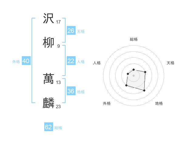 沢柳 萬麟さんを姓名の画数から五運を鑑定