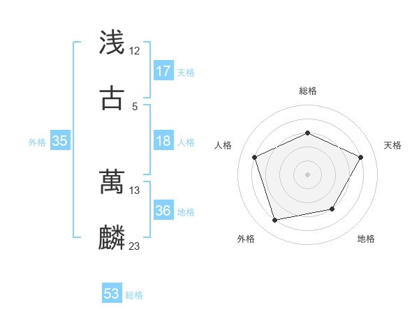 浅古 萬麟さんを姓名の画数から五運を鑑定