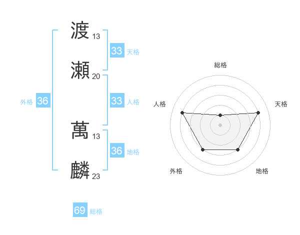 渡瀬 萬麟さんの天格は33画の4点!