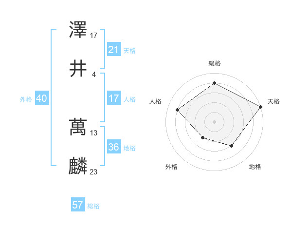 澤井 萬麟さんの天格は21画の5点!