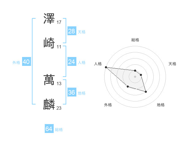 澤崎 萬麟さんを姓名の画数から五運を鑑定