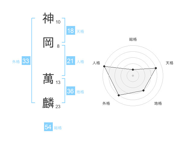 神岡 萬麟さんの総格は54画の1点!