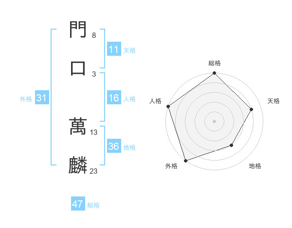 門口 萬麟さんの総格は47画の5点!