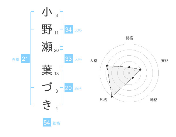 小野瀬 葉づきさんを姓名の画数から五運を鑑定
