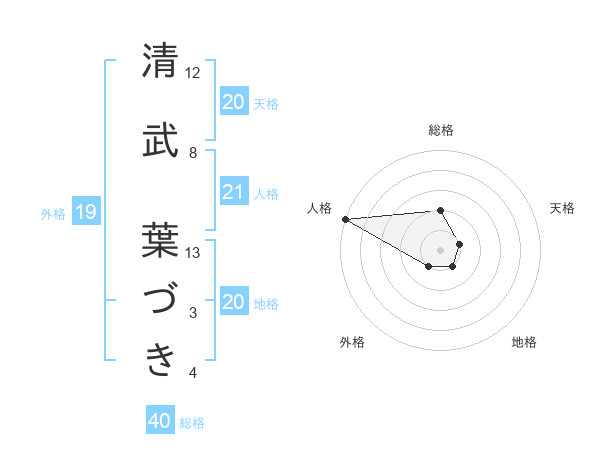 清武 葉づきさんの天格は20画の1点!
