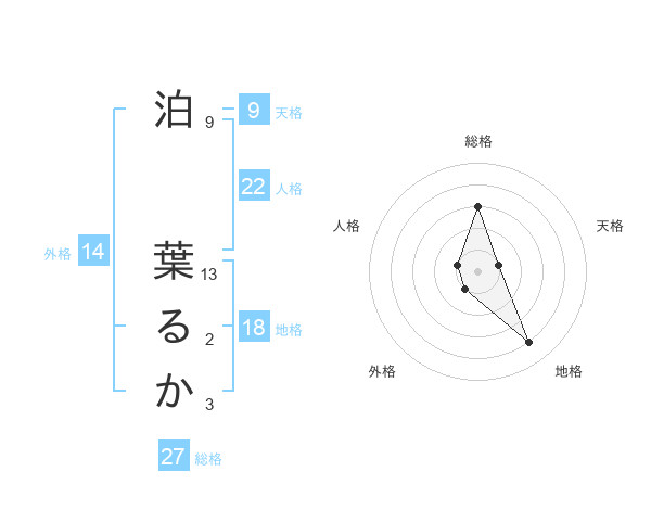 泊 葉るかさんを姓名の画数から五運を鑑定