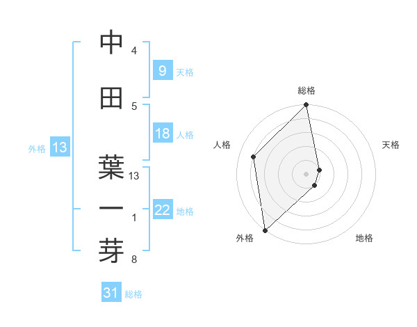 中田 葉一芽さんを姓名の画数から五運を鑑定
