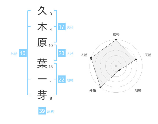 久木原 葉一芽さんの総格は39画の5点!