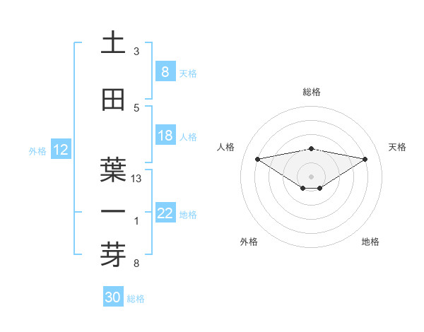 土田 葉一芽さんを姓名の画数から五運を鑑定