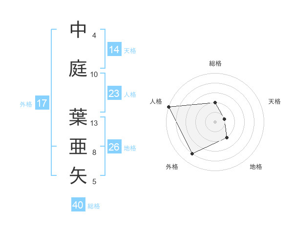 中庭 葉亜矢さんの天格は14画の1点!