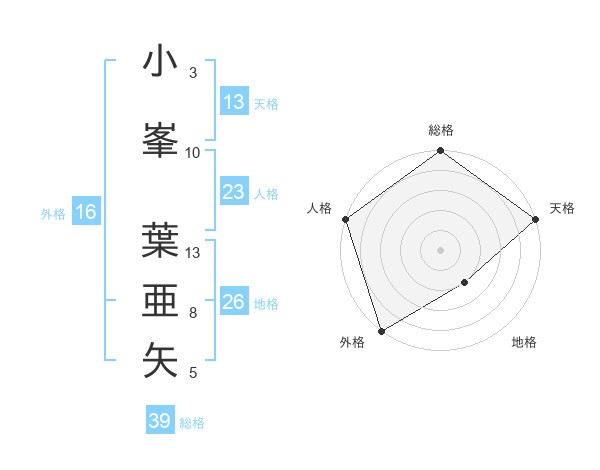 小峯 葉亜矢さんを姓名の画数から五運を鑑定