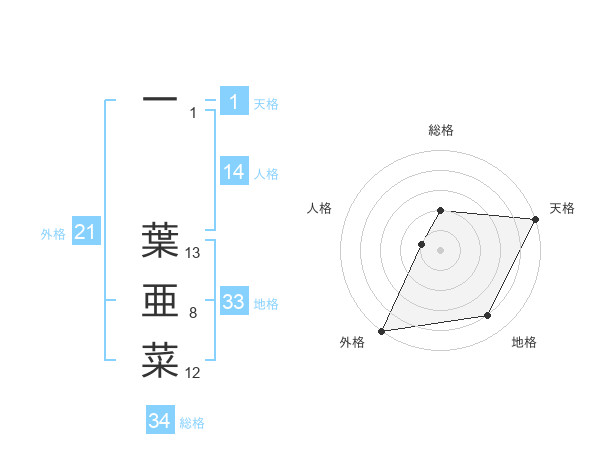 一 葉亜菜さんの外格は21画の5点!