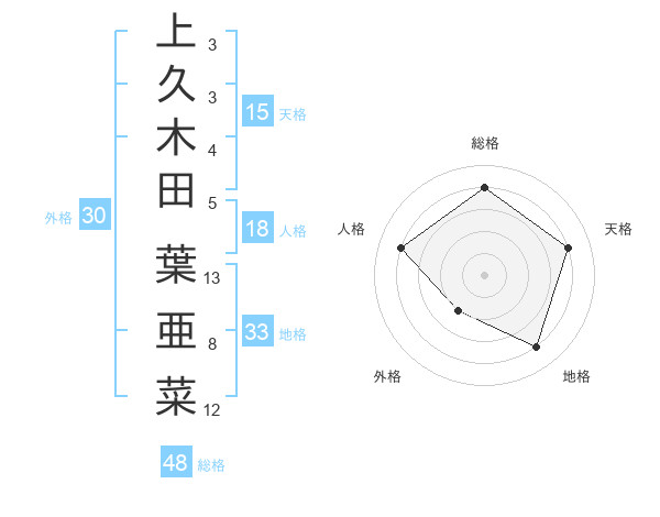 上久木田 葉亜菜さんの地格は33画の4点!