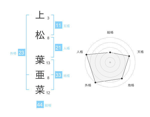 上松 葉亜菜さんを姓名の画数から五運を鑑定