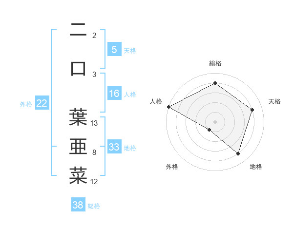 二口 葉亜菜さんの総格は38画の4点!
