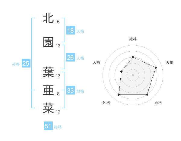 北園 葉亜菜さんの総格は51画の3点!