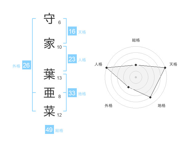 守家 葉亜菜さんの天格は16画の5点!