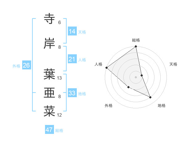 寺岸 葉亜菜さんの総格は47画の5点!