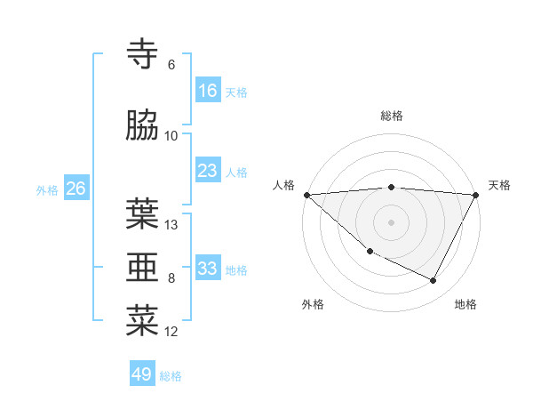 寺脇 葉亜菜さんを姓名の画数から五運を鑑定