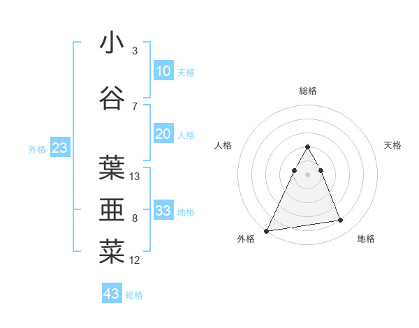 小谷 葉亜菜さんの総格は43画の2点!
