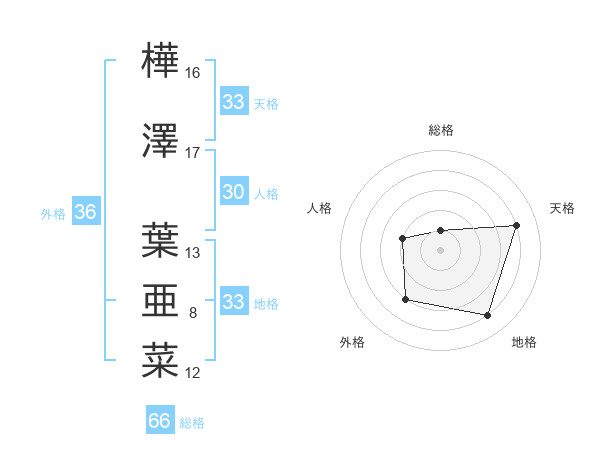 樺澤 葉亜菜さんの地格は33画の4点!