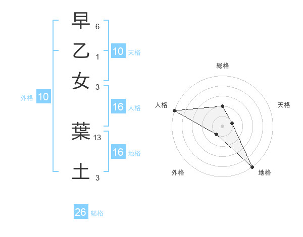 早乙女 葉土さんの総格は26画の2点!