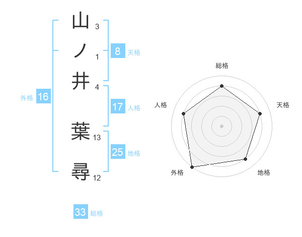 山ノ井 葉尋さんの総格は33画の4点!