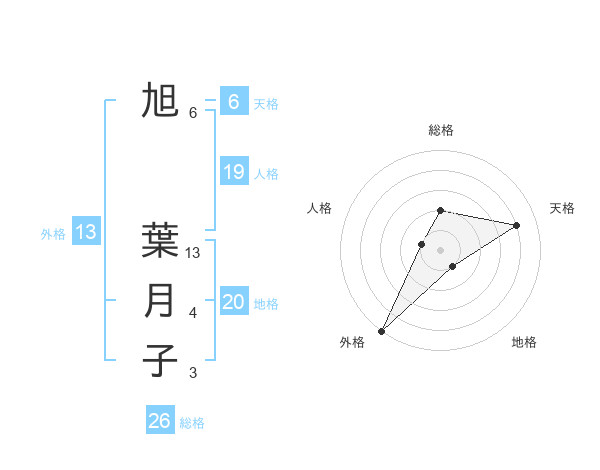 旭 葉月子さんを姓名の画数から五運を鑑定