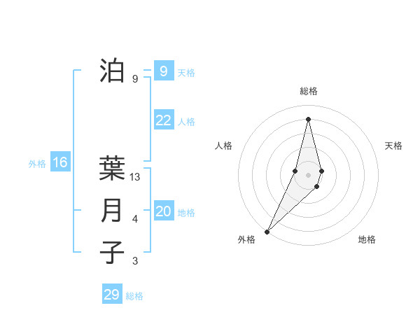 泊 葉月子さんを姓名の画数から五運を鑑定