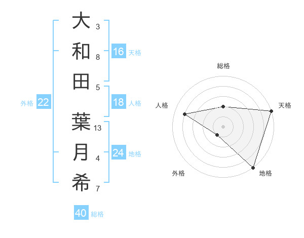 大和田 葉月希さんの総格は40画の2点