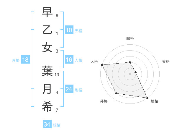 早乙女 葉月希さんを姓名の画数から五運を鑑定