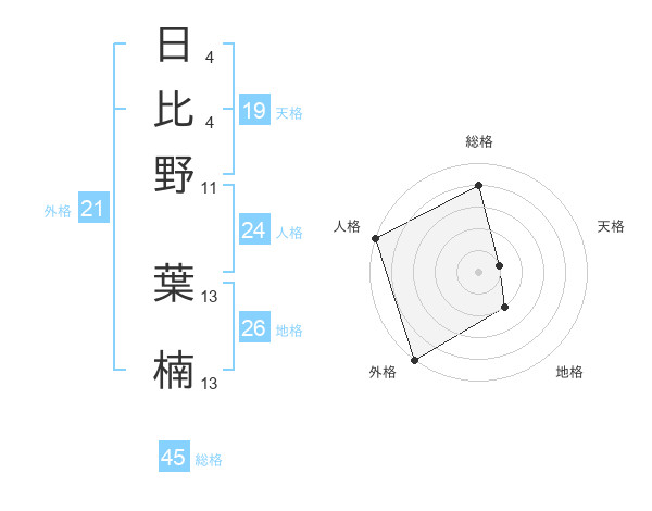 日比野 葉楠さんを姓名の画数から五運を鑑定