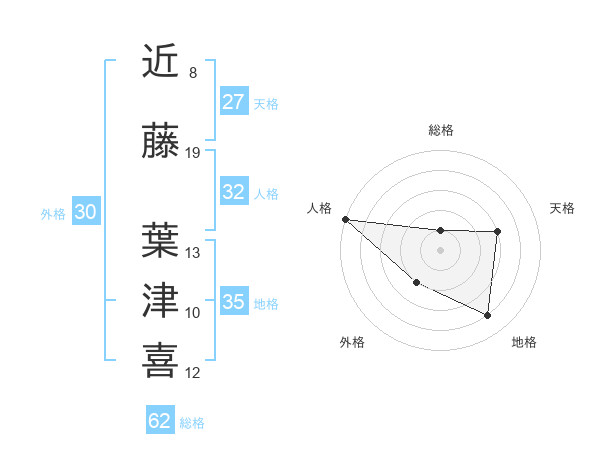 近藤 葉津喜さんを姓名の画数から五運を鑑定