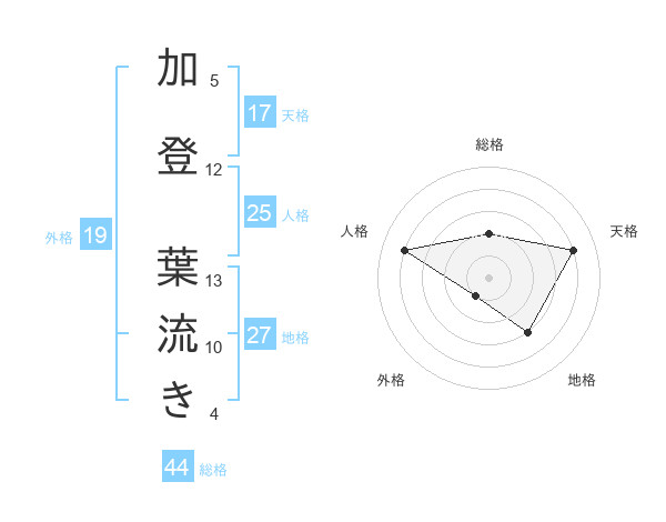 加登 葉流きさんを姓名の画数から五運を鑑定