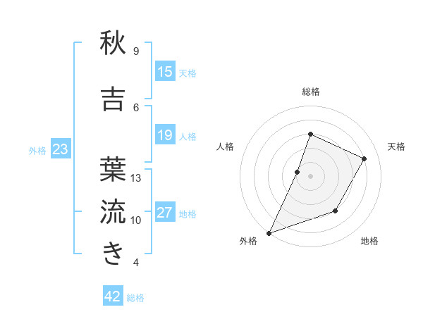 秋吉 葉流きさんを姓名の画数から五運を鑑定