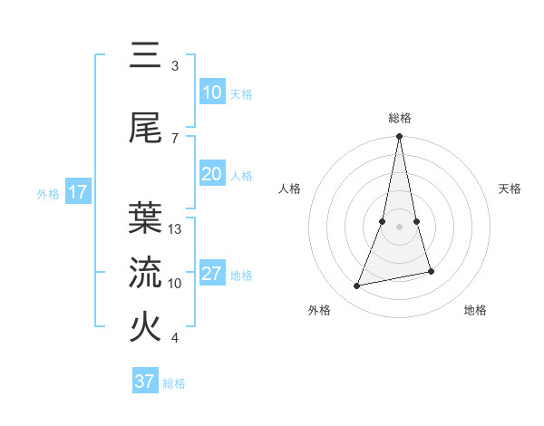 三尾 葉流火さんを姓名の画数から五運を鑑定