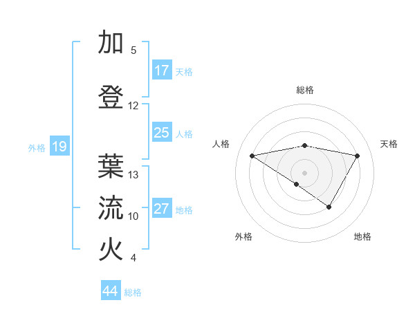加登 葉流火さんの総格は44画の2点