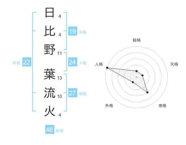 日比野 葉流火さんの外格は22画の1点!